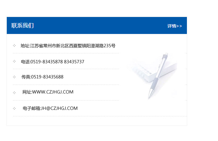 傳真:0519-83435688    郵編:213135    網址:WWW.czjhgj_com.cnylled.com    電子郵箱:JH@czjhgj_com.cnylled.com